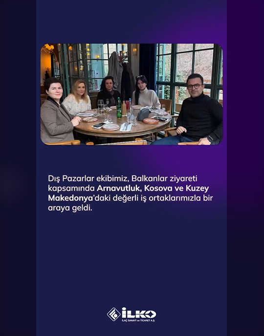 İLKO İlaç olarak; güçlü iş birlikleri ve uzun vadeli vizyonumuz doğrultusunda Balkanlar’daki büyümemizi kararlılıkla sürdürürken, tutku ve özveriyle yürüttüğümüz çalışmalarımızı her geçen gün daha ileriye taşıyoruz. Değer yaratma sorumluluğumuzla hareket ederek, ortaklarımızla birlikte büyüyen, gelişen ve geleceğe güvenle ilerleyen bir yolculuk sürdürüyoruz.