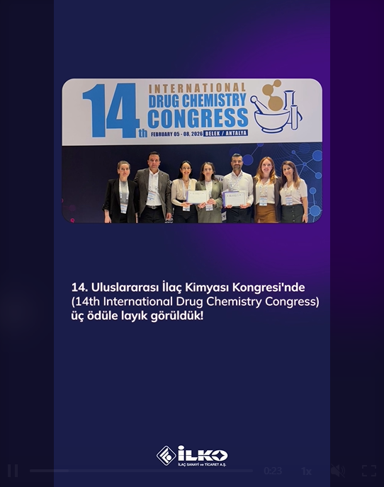 İLKO İlaç olarak; 5–8 Şubat tarihleri arasında gerçekleştirilen 14. Uluslararası İlaç Kimyası Kongresi’nden (14th International Drug Chemistry Congress) 3 ödülle ayrılmanın gururunu yaşıyoruz.