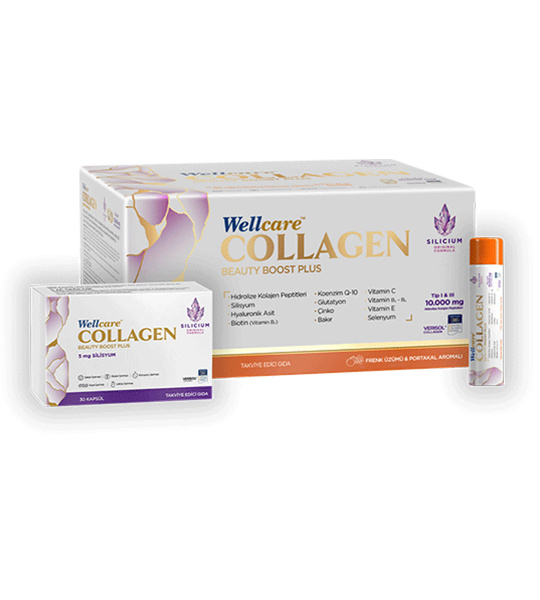 Wellcare Collagen Beauty Boost Plus 10.000 mg Likit Form - 30 Tüp & 30 Silisyum Kapsül / Frenk üzümü & Portakal Aromalı
